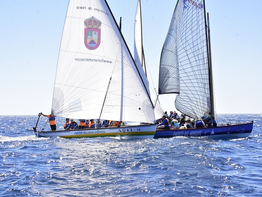 Una primera baliza en la que el Volcán de la Corona patroneado por Pedro de León se coló por delante del Puerto del Arrecife, levantando el Volcán de la Corona la bandera roja para protestar una maniobra del barco capitalino. A cierta distancia de los primeros clasificados se mantuvieron el Villa de Teguise de Santiago González y el Maramajo de Ana Hernández.