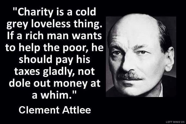 La caridad es una cosa fría, gris y sin amor. Si un hombre rico quiere ayudar a los pobres, debe pagar sus impuestos gustosamente y no repartir dinero a capricho.