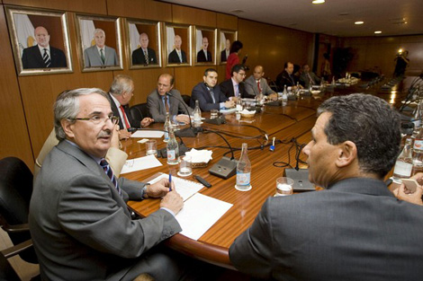 El presidente de la CCE, Sebastián Grisaleña, reunido con representantes de los bancos.