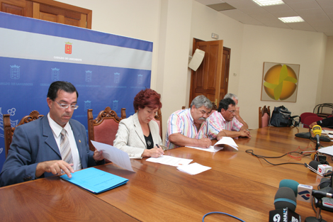 La presidenta del Cabildo de Lanzarote, Inés Rojas, firmó este miércoles un convenio de colaboración con distintas asociaciones de transportistas de la Isla.
