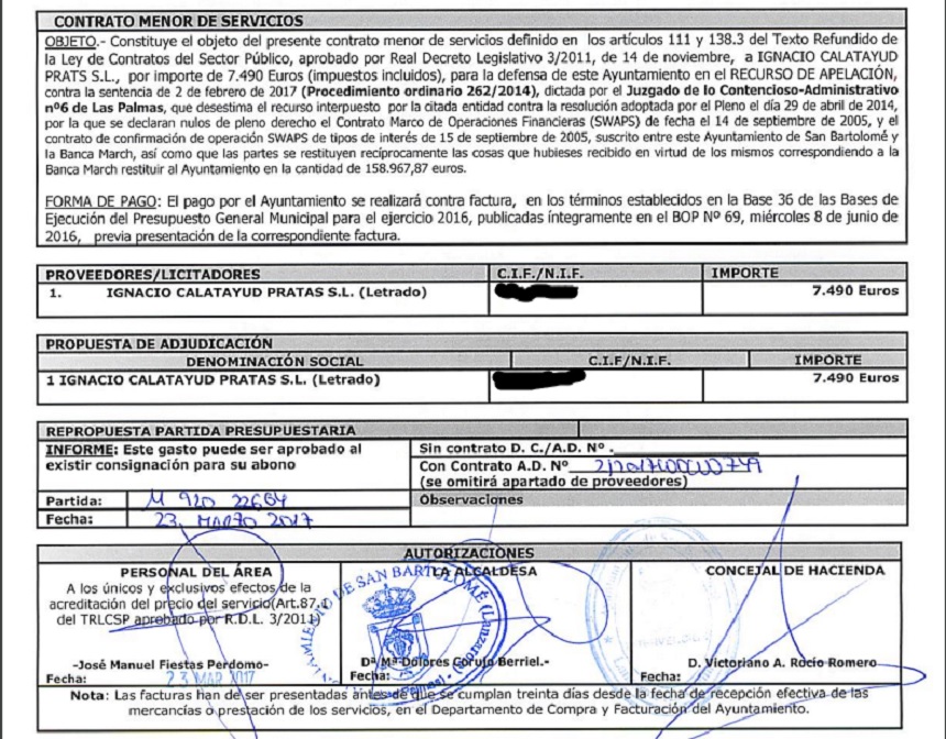 Así, según se explica en la citada sentencia, Ignacio Calatayud presentó recurso contra la resolución emitida el 21 de septiembre de 2021 por el Ayuntamiento de San Bartolomé, que tras comprobar la veracidad de lo afirmado por San Ginés en el pleno de junio, exigió al abogado el reintegro de las costas procesales que le habían sido directamente abonadas, en un caso con muchos paralelismos con el que se investiga en el Juzgado de instrucción nº2 en relación con las costas procesales del concurso de Inalsa.