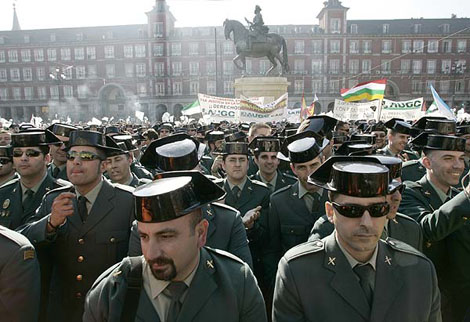 La Plaza Mayor de Madrid fue el escenario elegido el pasado sábado por cientos de guardias civiles para exigir la modernización y desmilitarización del instituto armado. En el manifiesto final, rechazaban la reforma del régimen disciplinario planteada por el Gobierno, porque es "más duro" que el que se aplica a los demás cuerpos policiales, y exigían al Ejecutivo "cumplir con los compromisos adquiridos" en su programa electoral.