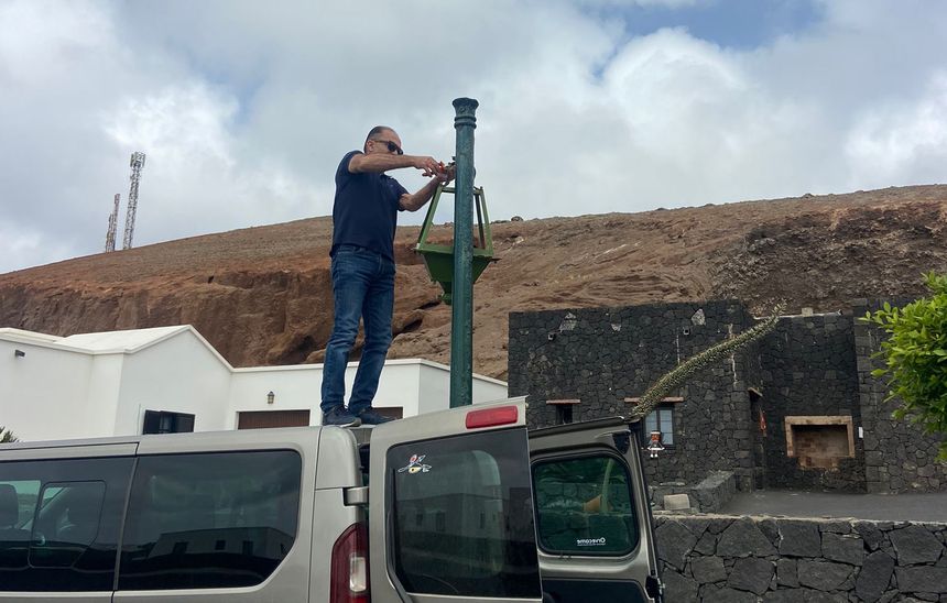La reparación de este sábado, como muestran las imágenes que nos ha enviado un lector de Crónicas, se ha producido a las once de la mañana en Guiguan, donde se encuentra la montaña con las antenas de radio y televisión, enfrente de la ermita de Mancha Blanca. Después de una llamada de una vecina, el alcalde ha acudido allí y se ha puesto manos a la obra. Lo ha hecho rápido y sin la ropa de electricista, ni siquiera con los guantes que se usan para evitar accidentes indeseados. No era el caso porque Machín sabía que la farola no tenía corriente y por tanto no había peligro, según ha explicado posteriormente a este diario cuando le ha preguntado un periodista por el asunto en cuestión. ¿Es la primera vez que hace algo así? Pues no. De hecho, esta misma semana en el popular programa de radio que dirige y presenta el periodista Alfonso Canales, el "A buena hora" de Crónicas Radio-COPE Lanzarote, ya soltó que el día anterior había sido criticado por algunos porque se había subido a lo alto de una farola para arreglarla. "A mí me da lo mismo que me critiquen, si veo que está rota y puedo arreglarla, la arreglaré", soltó con la naturalidad que le ha hecho un político especial. Más que político, sin duda es desde este momento el alcalde que susurraba a las farolas. Lo que les dice para que no se vuelvan a romper es una incógnita.