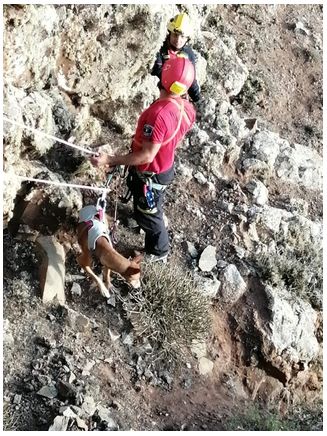 El animal se encontraba a unos 30 metros del borde del acantilado. Los bomberos montaron entonces una cuerda de descenso y otra de seguro, alcanzando así al perro, al que colocaron un arnés y elevaron a la parte alta. Tras estas acciones, pudieron entregárselo al propietario, que había dado la voz de alarma, dando así por finalizado el servicio.