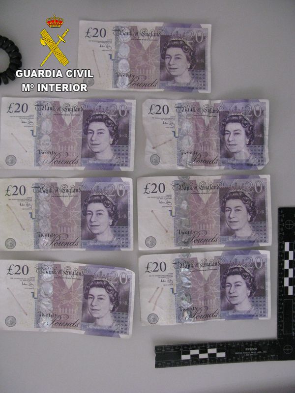 A raíz del aviso del personal del hotel a la Guardia Civil sobre un cliente que intentaba pagarles un producto con un billete falso, explica este miércoles en nota de prensa el Instituto Armado, los agentes acudieron al lugar y comprobaron mediante los medios disponibles en el hotel -rotulador reactivo y máquina electrónica- que dicha persona poseía el referido billete de 20 libras de valor, colaborando posteriormente con los agentes actuantes y entregando seis billetes falsos más de un valor de 120 libras.