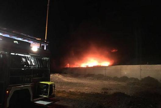 El incendio en una recuperadora de coches cercana al cementerio de Arrecife ha terminado calcinando la pasada noche diversos vehículos que estaban situados en su interior.