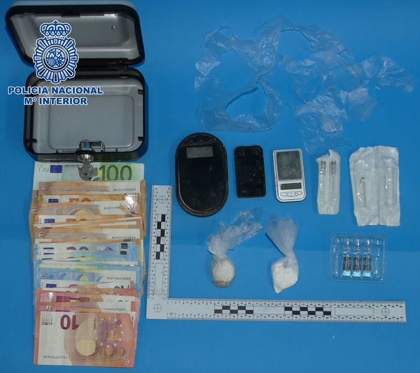 En el interior del almacén del establecimiento se intervinieron dos básculas de precisión, dos envoltorios de mayor tamaño conteniendo sustancia estupefaciente, dinero en efectivo y útiles para el consumo y venta de droga.