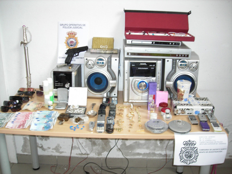 Se practicaron varios registros en domicilio, interviniendo varios tipos de drogas, tales como heroína, crack y Hachish, así como armas, joyas, dinero y objetos procedentes de robos en domicilios e interiores de vehículos, producidos en la capital Gran Canaria.