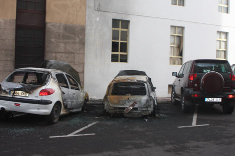 El personal del Consorcio de Bomberos de Arrecife halló dos vehículos ardiendo cuando llegaron al lugar del siniestro, momento en el que el fuego empezó a extenderse a otros dos coches cercanos y a la fachada de una vivienda sin producir daños personales.