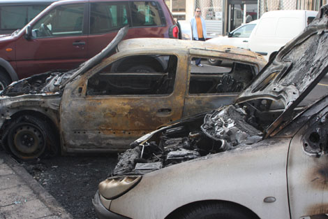 Seis vehículos y la fachada de una vivienda se han visto afectados por un incendio que se produjo este martes alrededor de la una de la madrugada en la calle de Tofio, en el municipio lanzaroteño de Arrecife, según informa el Centro Coordinador de Emergencias (Cecoes 112).