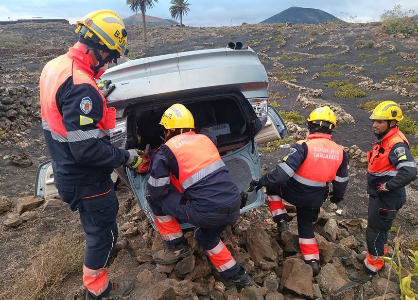 Un vehículo ha volcado este viernes por la tarde cuando circulaba por la carretera que une Tías con Masdache, sin que en principio se haya podido averiguar si hay alguna persona herida como consecuencia del fuerte impacto.