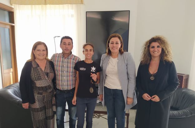 La alcaldesa, como el concejal de Deportes felicitó a Aroa Merino por buenos e importantes triunfos deportivos, se congratulan que sea una conejera, y natural de Arrecife, la actual subcampeona de España en Atletismo, y probablemente, logre plaza para estar presente en Tokio, este próximo verano.