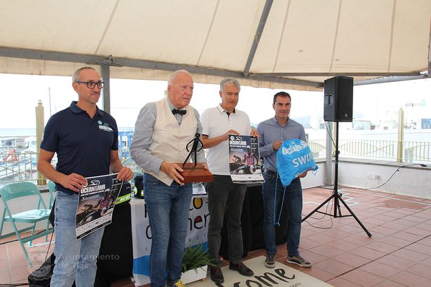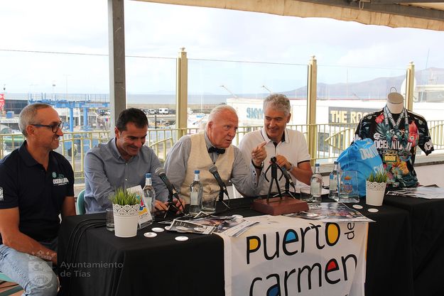 El alcalde de Tías, José Juan Cruz, y el concejal de Turismo y Deportes, Mame Fernández, presentaron este lunes la carrera junto al fundador del Ocean Lava, Kenneth Gasque -recién llegado de ser galardonado en Hawai-, y del director técnico de la competición, Cristian Caleri.