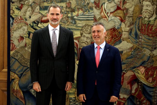 El presidente de Canarias, Ángel Víctor Pérez, tras la reunión mantenida este lunes con Felipe VI en el marco de la ronda de contactos con los presidentes autonómicos elegidos tras los últimos comicios, se mostró “gratamente sorprendido del gran conocimiento que tiene el Rey sobre la realidad de Canarias, de la política, y de nuestra economía”. Torres dijo que hablaron “de las semanas previas hasta constituir el actual Gobierno de Canarias” y añadió que “incluso reconoció que había leído el discurso de investidura y conoce la potente agenda social que queremos promover en las islas; hemos hablado de lo importante que es invertir en formación en innovación”.Asimismo, dijo el presidente que habían hablado de “la sostenibilidad de nuestra tierra y la Casa Real se ha mostrado a favor de que nos convirtamos en una plataforma de autosuficiencia energética, de nuestra apuesta clara por las energías limpias y renovables; por nuestra lucha contra el cambio climático”.