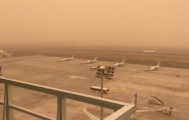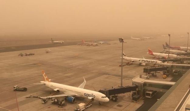 La calima que se ha intensificado este domingo y el fuerte viento que además le acompaña ha provocado alto tan insólito como el anuncio de Aeropuertos Españoles y Navegación Aérea (AENA) de decretar el cierre de todos los aeropuertos de Canarias y el desvío de los vuelos a aeródromos alternativos donde se garantice la seguridad de las aeronaves y de sus pasajeros, como es el caso de los de Marruecos. La idea, hasta nuevo aviso, es que se puedan retomar las conexiones con relativa normalidad, aunque le polvo en suspensión y la arena que hace casi invisible el horizonte del Archipiélago parece empeñado en que la situación no cambie ni mejore. El propio ente público está recomendando a los usuarios afectados que consulten las páginas oficiales incluso antes de acudir a los aeropuertos para evitar más trastornos del que ya está causando la meteorología.