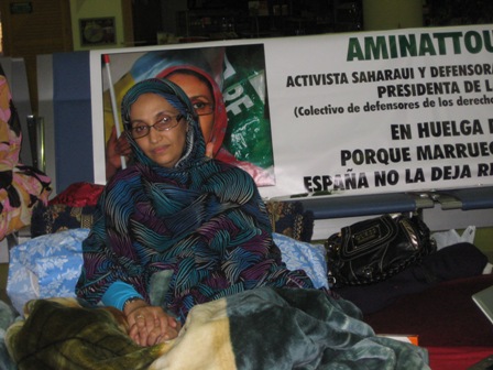 Aeropuertos Españoles y Navegación Aérea (Aena) ha habilitado desde este miércoles unas dependencias dentro del recinto aeroportuario de Guacimeta para que la activista saharaui Aminatou Haidar pueda pasar la noche. Hay que recordar que lleva desde el pasado viernes -cuando fue expulsada de El Aaiún- en el aeropuerto de la Isla, de donde hasta ahora era desalojada al anochecer por la Guardia Civil dado que el aeropuerto cierra entre las 00:00 y las 06:00 horas.