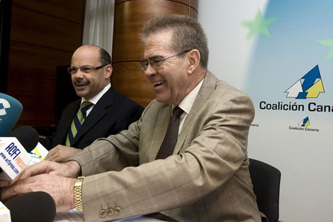 El presidente y el portavoz del grupo parlamentario de Coalición Canaria, José Miguel Barragán (i) y José Miguel González, respectivamente, durante la rueda de prensa deeste viernes.