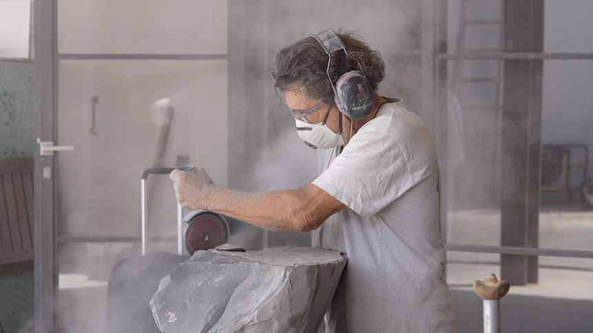 La presidenta del Parlamento de Canarias, Astrid Pérez, visitó el taller del escultor Paco Curbelo en San Bartolomé (Lanzarote), donde el artista ya ha comenzado a trabajar en la escultura que representará a La Graciosa en la entrada principal de la Cámara autonómica.