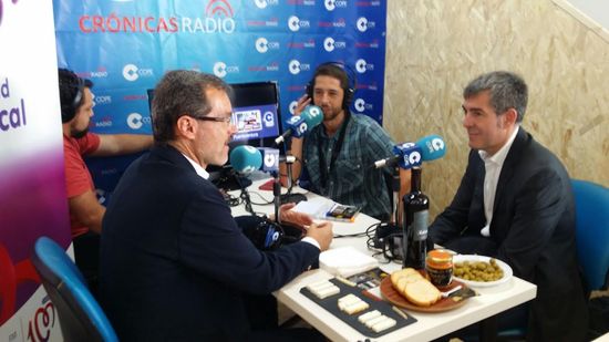 El presidente del Gobierno de Canarias, Fernando Clavijo, es uno de los responsables públicos que ha pasado este viernes por el stand de Cadena Cope. El presidente ha dejado claro que apuesta por un verdadero impulso para el sector primario y ha calificado de "espectacular" el despliegue que como cada año realiza el Cabildo de Fuerteventura, que viene invirtiendo unos 300.000 euros anuales para que esta Feria siga teniendo la esencia de sus últimas ediciones.