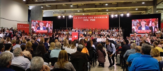 Pedro Sánchez hizo hincapié en que en estas elecciones “nos jugamos avanzar o retroceder, nos jugamos una España que mira al futuro o al pasado, una España donde quepamos todos o una España muy estrecha, nos jugamos entre la involución o el avance, y avanzar significa conquistar mayores cotas de justicia social, desterrar la corrupción y reivindicar la limpieza en el ejercicio de la actividad pública”.