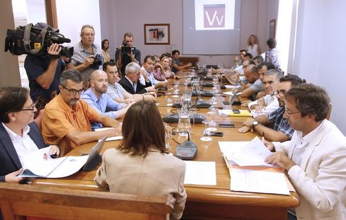 La consejera de Turismo, Cultura y Deportes del Gobierno de Canarias, Mariate Lorenzo, y el viceconsejero de Turismo, Cristóbal de la Rosa, se reunieron este miércoles, 3 de agosto, con una nutrida representación de cargos públicos, empresariales, sindicales y de diversas ramas del sector turístico de Lanzarote para abordar los estudios del alquiler vacacional.