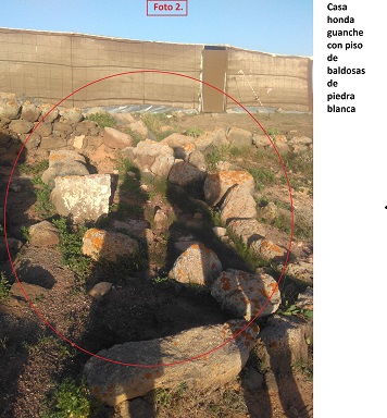 Pero en este corto artículo no trato de contar la historia de los guanches ni tampoco la de la colonización de Canarias, simplemente quiero informarles que en la visita que hice hoy al Poblado Guanche de Zonzamas, encontré una de sus casas hondas con un suelo de baldosas raras, que pienso que nadie antes las había descubierto porque no se aprecia que alguien haya escavado en dicho lugar. Y también se capta que la piedra que los guanches usaron para elaborar esas baldosas es de una composición arenosa blanca que jamás yo he visto en Lanzarote, y por ello creo que es algo que los arqueólogos deberían estudiar; más aún ahora que hay en proceso varias excavaciones en la zona.