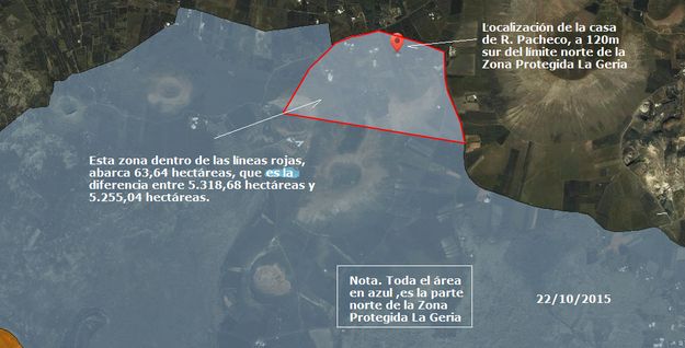 Intuyo que el error que hay de diferencia en hectáreas entre el anulado Plan Especial del Paisaje Protegido La Geria y la información que da Grafcan Visor Gobierno Canario, lo descubrieron ingenieros meses después de haberse acordado, redactado y aprobado el documento Plan Especial del Paisaje Protegido La Geria, pero por razón de que el documento ya había sido publicado, no se corrigió. Por lo dicho el anulado Plan Especial del Paisaje Protegido La Geria es ilegal porque no refleja la realidad física terrestre de la zona; tenga menos o más hectáreas. Y por lo tanto no era apto para juzgar la obra de Pacheco ni cualquier supuesta ilegalidad urbanística o territorial que se haya supuestamente cometido en La Zona Protegida La Geria.