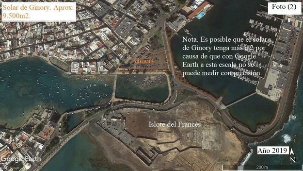 Comparando las fotos de mapas antiguos con las actuales, encuentro que ese solar llamado “Ginory” (por causa de que está frente al Restaurante bar con dicho nombre), es un solar que fue formado por la naturaleza volcánica de la isla; y como ya he expuesto: no es relleno de mar. Ahora bien, que la Ley haya dado razón a los propietarios y que el Ayuntamiento de Arrecife esté obligado a pagar unos 30 millones de euros, o más, a los propietarios, es algo que los dueños del solar ganaron porque los abogados del Consistorio de Arrecife no supieron litigar alegando la Ley de Costa en favor de un posible retranqueo que tal vez se le debía haber hecho a la zona.
