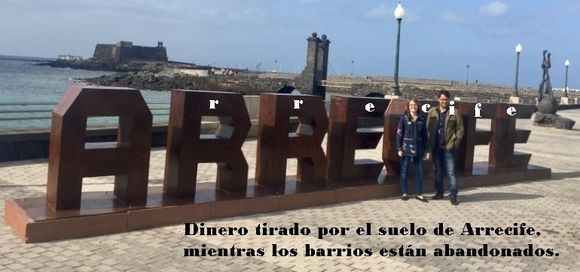 Post datum:. El Ayuntamiento de Arrecife no solo comete faltas de ortografía, también mal usa el dinero de los contribuyentes en monumentos innecesarios, olvidándose de las precarias situaciones y condiciones por las que atraviesa la ciudad que posee unas 2.000 viviendas abandonadas llenas de basura y ratas, barrios abandonados sin calzadas asfaltadas, sin drenajes, sin aceras, etc. Más dos islotes dejados de la mano del Cosmo Poder. Institutos y escuelas en estado tercermundista y el Puente las Bolas en ruina. Pero según alegan los políticos que gobiernan el Consistorio de Arrecife, todo va en perfecta rienda hacia la prosperidad.