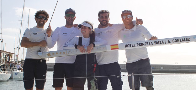 La primera prueba del día tuvo como novedad la descalificación del Huatey de Peru Mujica y del CRIS&KIM Travel Michelle Team de Juan Luis Páez por realizar un fuera de línea. El Hotel Princesa Yaiza de Alfredo González dominó la prueba desde el comienzo, sacando en línea de meta una distancia considerable con el Huatey, que se enteraba en ese momento de su descalificación. Así, el Botellín de Estrella de Alfredo Morales ocupaba la segunda posición, mientras que el Biobizz de José Azqueta entraba tercero, según ha informado este sábado la organización de la prueba en nota de prensa.