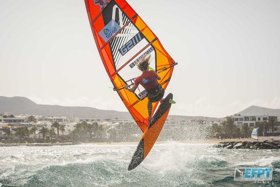 Este jueves tuvo lugar la segunda jornada del Campeonato Europeo de Windsurf en la modalidad Freestyle, en la cual se disputó la primera eliminatoria doble. La Playa de Las Cucharas (Lanzarote) ofreció unas condiciones inmejorables de olas y viento que dieron como resultado un final apasionante. El francés Adrien Bosson tuvo que superar al belga Yentel Caers en la gran final del día. Por su parte, Antony Ruenes consiguió la tercera posición.