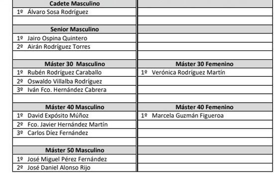 primeros puestos de la General. En categorías quedan desiertas alguna de ellas por no contar con el mínimo de pruebas exigidas en el reglamento.