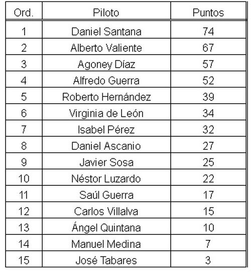 Clasificación (pilotos) de la I Copa SKODA Fabia