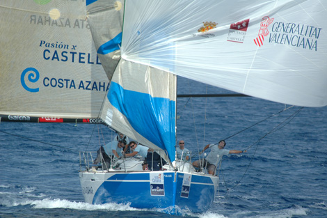 En el campo de los TP y GP el viento ha soplado entre los 13-14 nudos de intensidad, mientras que en el campo de los ORC el viento ha soplado del norte-nordeste de unos diez nudos.