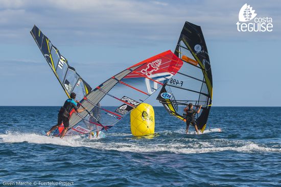 La última edición del Proam Costa Teguise de Slalom sigue dando que hablar. Ante las cambiantes condiciones del viento que no terminaba por posicionarse en una dirección estable y con una intensidad de 10-12 nudos del noroeste, el último día de competición del Proam Costa Teguise de Slalome el comité decidió dar salida a 3 mangas de exhibición de larga distancia. En estas regatas participaron todos los inscritos, mezclándose los hydrofoils con los slalom y alcanzándose auténticas velocidades de vértigo.