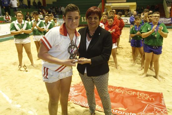 Ese mismo día, en el Terrero de Lucha ‘Feluco Paz’ de San Bartolomé se procedió igualmente a la clausura de la competición de Lucha Canaria que ha contado con 209 participantes, 197 chicos y 12 chicas. Las entregas de trofeos y medallas contaron con la presencia de las consejeras de Deportes y de Educación del Cabildo de Lanzarote, Patricia Pérez y Carmen Rosa Márquez, respectivamente.