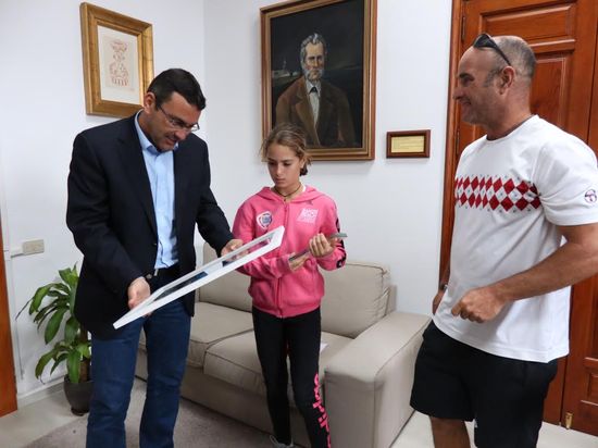El Gobierno del Ayuntamiento de Teguise explica este miércoles en nota de prensa que el alcalde, Oswaldo Betancort, felicitó personalmente a la pequeña deportista que entrena a diario en el Club de Tenis Drop Shot de Costa Teguise, y la alentó para que siguiera cosechando éxitos y disfrutar de una prometedora carrera sin dejar de lado sus estudios.