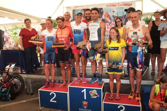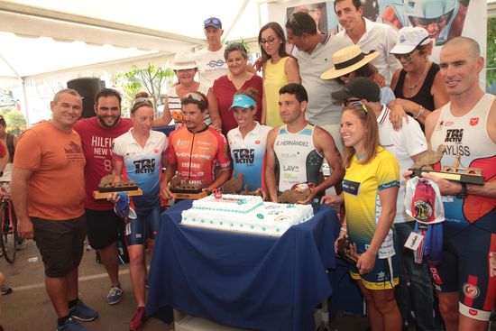 El XXV Triatlón Real Club Náutico de Arrecife - Ciudad de Arrecife concluyó con la entrega de trofeos, acto que contó con la presencia de Jacobo Lemes, concejal de Deportes del Ayuntamiento de Arrecife, que estuvo acompañado por los ediles Samuel Martín y Carmen Delgado, y la consejera de Deportes del Cabildo de Lanzarote, Patricia Pérez. Una entrega de trofeos en la que se celebró las bodas de plata del triatlón corto más veterano de Canarias.