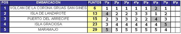 En la baliza de tierra se mantenían las posiciones, y el Volcán de la Corona GSG aumentaba su ventaja con respecto a sus seguidores.