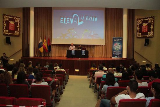 El presidente del Cabildo de Lanzarote, Pedro San Ginés; y el consejero de Empleo de la primera Corporación insular, Manuel Cabrera; recibieron este viernes a los 300 alumnos de los IES de Playa Honda, San Bartolomé y Zonzamas, que participaron este 26 de mayo en la jornada 'Eleva2 al éxito' en la que se recalcó que 'la motivación, el esfuerzo y la ilusión son las claves para que crear el futuro'.