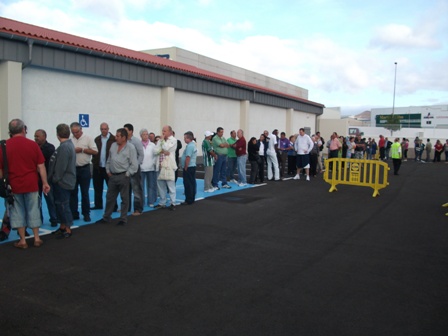 Para hacerse una idea del rotundo éxito que marca está acaparando en su primer día de apertura en Lanzarote, basta decir que antes de las 12:00 horas del mediodía de este jueves ya se había vaciado cerca del 18 por ciento del stock, y que durante esta primera jornada el nuevo supermercado espera facturar unos 200.000 euros.