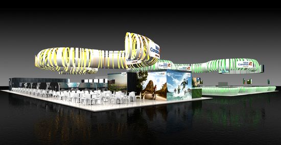 El pabellón, que albergará a 553 empresas con 1.000 personas inscritas en el stand, en el que cada Isla contará con su espacio exclusivo, estará equipado con una espectacular megapantalla LED de formas curvas que colgará del techo. Con más de 100 m2 de superficie, esta instalación permitirá la proyección de audiovisuales de gran formato y constituye el elemento más destacado de un proyecto de gran impacto visual.