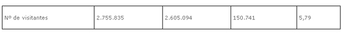Con un total de 150.741 visitas de más que en 2014 para un total anual de 2.755.835, lo que supone un aumento del 5,79% y convierte a la Red en uno de los conjuntos turísticos de pago más demandados de todo el país, los Centros incrementaron sus ingresos por la venta de entradas en 1.066.718,35 euros, esto es, un 6,64% más que en el ejercicio anterior.