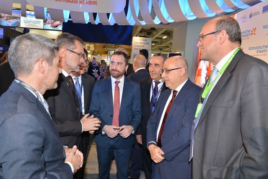 Posteriormente, el ministro de Industria, Energía y Turismo, Álvaro Nadal, acompañado de la secretaria de Estado de Turismo, Matilde Asían, visitó el pabellón de Canarias donde fue recibido por el consejero regional, Isaac Castellano, y por el consejero lanzaroteño de Promoción Turística, Ángel Vázquez, quien abordó con los máximos representantes de los Gobiernos de España y Canarias en materia turística las próximas iniciativas que se van a llevar a cabo en la isla dentro del proyecto Saborea Lanzarote, estrechamente vinculado al turismo.