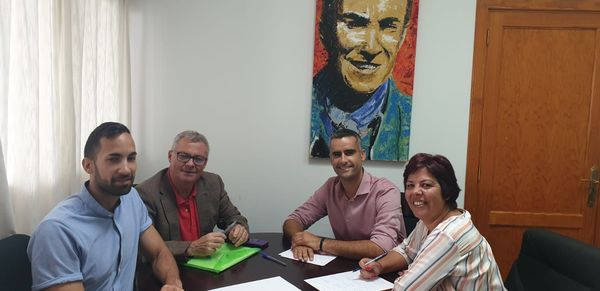 En la mañana de este jueves el alcalde de San Bartolomé, Alexis Tejera, acompañado por la concejal de Educación, Alma María González, se reunió en la Casa Consistorial con Antonio Ojeda Domínguez, Jefe de Sección de Escuelas Taller, Talleres de Empleo y PFAE (Programas de Formación en Alternancia con el Empleo), del Servicio Canario de Empleo y técnicos del Área.