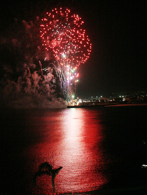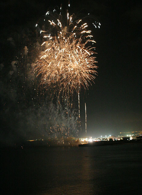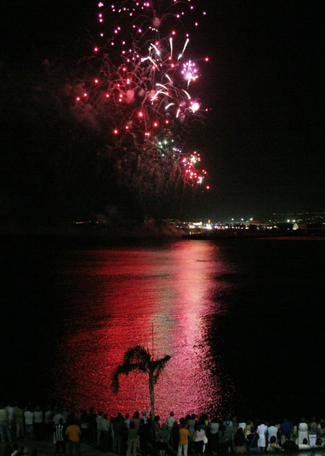 Los fuegos artificiales dieron paso a la despedida de San Ginés 2007. Modestos pero sugerentes, cientos de luces, colores y formas iluminaron el cielo de Arrecife a las 22.00 de la noche del pasado sábado. Un numeroso público se dio cita en el Recinto Ferial para disfrutar del espectáculo, aprovechando también para disfrutar en las atracciones o tomar un aperitivo en el Ventorrillo. Rozando la media noche, la luz apuntó al escenario de la Cúpula, era el momento de la música.