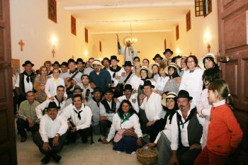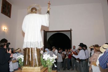 Los cientos de romeros desfilaron por las calles de la localidad, en las que se pudieron observar todo tipo de carretas, vestidos típicos y ofrendas de productos típicos que fueron depositadas a los pies del santo al final del trayecto.