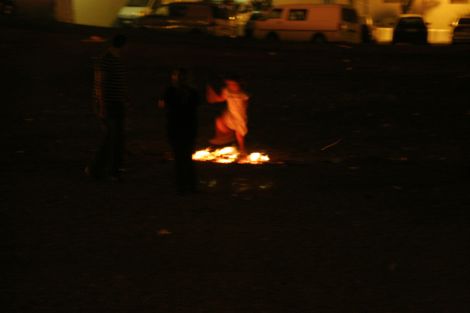 Ya con el estómago lleno, y en el fervor de la fiesta, las primeras llamas comenzaron a prenderse a eso de las 00:00 horas, comenzando así el tiempo de los ritos y costumbre relacionados con la superstición y la purificación.