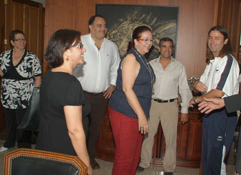 La presidenta del Cabildo, Manuela Armas, y el consejero de Deportes, Manuel Cabrera, recibieron este miércoles en el despacho de Presidencia al conjunto de fútbol sala, Lanzarote Playas del Sur, por su recién logrado ascenso a la División de Plata.