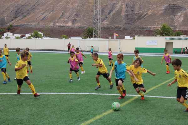 Medio centenar de niños y jóvenes de entre 5 y 14 años disfrutan desde este lunes por la mañana de la sexta edición del Campus de fútbol de la Unión Deportiva Las Palmas en Lanzarote, que se desarrollará a lo largo de toda la semana en el Campo de Fútbol Municipal de Yaiza.